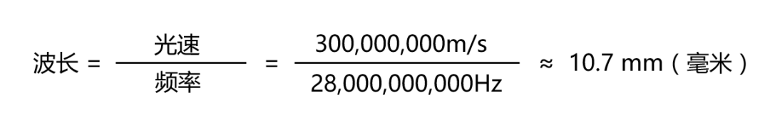 目前,国际上主要使用28GHz进行试验(这个频段也有可能成为5G最先商用的频段)。如果按28GHz来算,根据前文我们提到的公式: