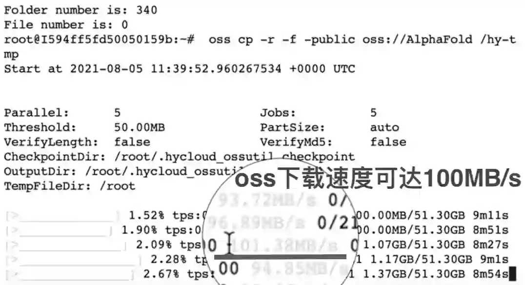 平台数据传输的方式,多种多样,Sftp、Filezilla等都支持,但数据太大的话,难免意外中断,而官方推荐的Oss工具,要靠谱得多,命令简单,速度又快,一分钟理论值3G左右,体验很香。