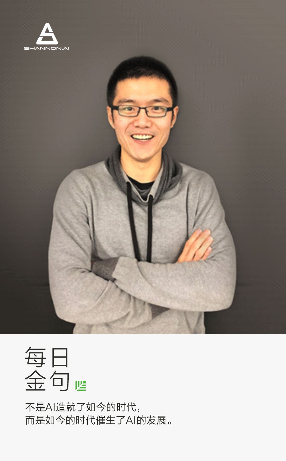 我坚信人工智能逐渐会给很多行业带来变革。我认为,并不是AI造就了如今的时代,而是如今的时代催生了AI的发展:我们现在的工作正变得更加复杂,信息量变得更大。随着海量数据的产生,我们有了更多的需求去分析、理解,去提取我们想要的东西。我们每天都在用头条、滴滴、饿了么、美团这样的应用,大量的需求意味着我们需要一种高效的工具来分析、整合其中产生的数据,让人们能够简便地运用其中的知识。所以其实是社会需求推动了AI,AI反过来再推动了社会的变革。
