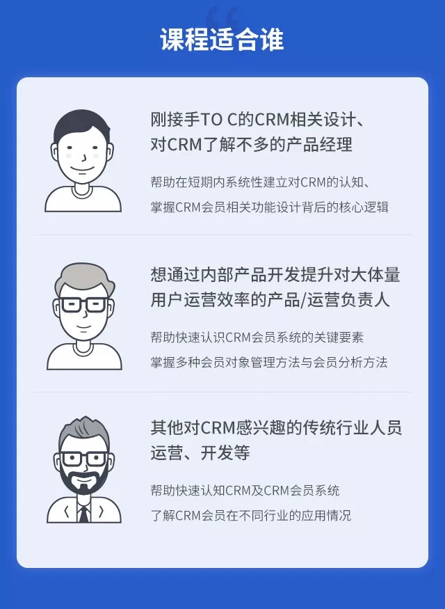 起点学院特邀拥有7年CRM相关经验,参与打造过多款新零售、餐饮O2O等平台CRM系统,“K12课外辅导领跑者”海风教育产品总监@洪炼,发起15日学习计划,带你了解CRM的前世今生,全面梳理CRM会员系统的业务逻辑,深度探究会员管理体系的应用价值与方法。
