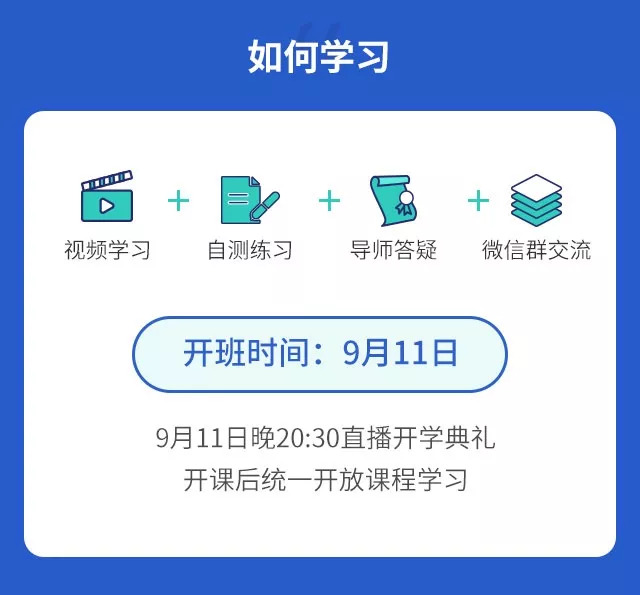 9月11日开课,本公众号粉丝报名可凭借优惠码享受4.5折优惠。详见文末。