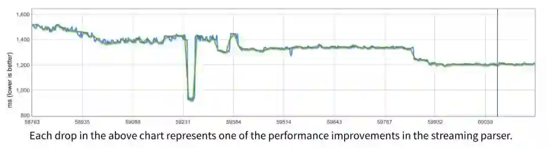 在 Chrome 中,下载大脚本时是在 worker 线程上以流进行解析的,此版本修复了一个源流中用自定义 UTF-8 进行解码的问题,修复后使得流式解析性能平均快了 8%。
