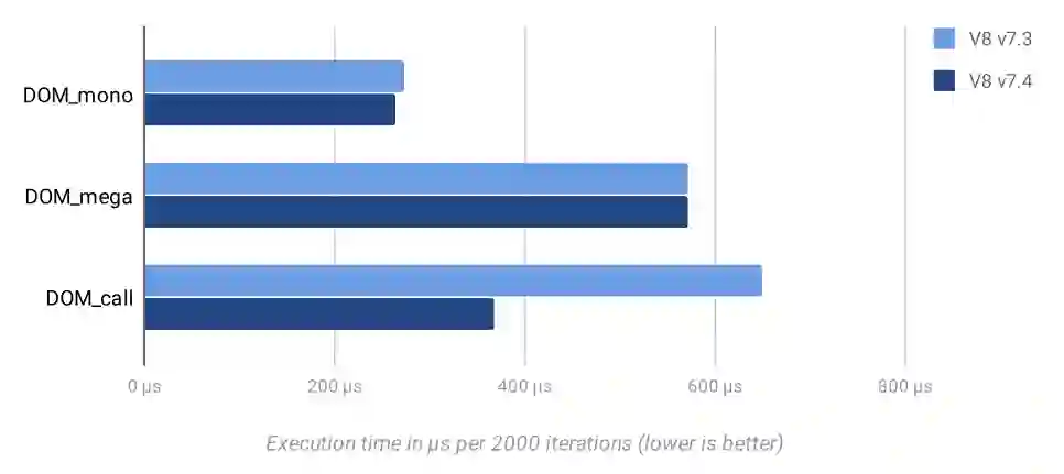 这是因为在 V8 中使用慢速路径通过 Function#call() 调用 DOM 访问器,而不是已经存在属性访问的快速路径。