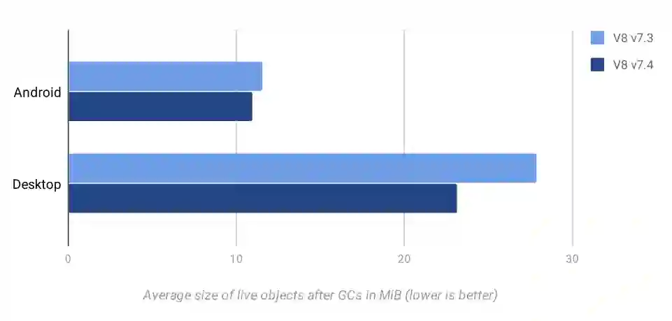 该字节码 flush 功能为 Chrome 用户节省了大量内存,将 V8 堆中的内存量减少了 5-15%,同时不会降低性能或显着增加编译 JavaScript 代码所花费的 CPU 时间。