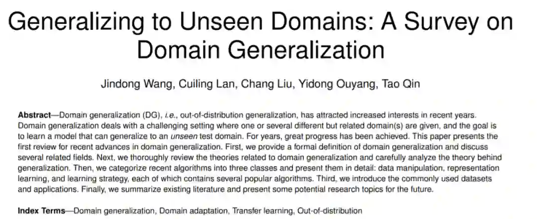 本文介绍 DG 领域的第一篇综述文章《Generalizing to Unseen Domains: A Survey on Domain Generalization》。