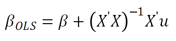 我们用常用的回归方法为切入来审视这个问题。在回归理论中,最简单的OLS(最小二乘法)的使用必须满足一系列强假设条件,其中一个条件关系到因果关系的推断的正确性,即E(u|X)=0,其数学语言是回归的误差项与输入变量相互独立。当此条件不满足时,就会导致内生性偏差(endogenous bias),见公式1。