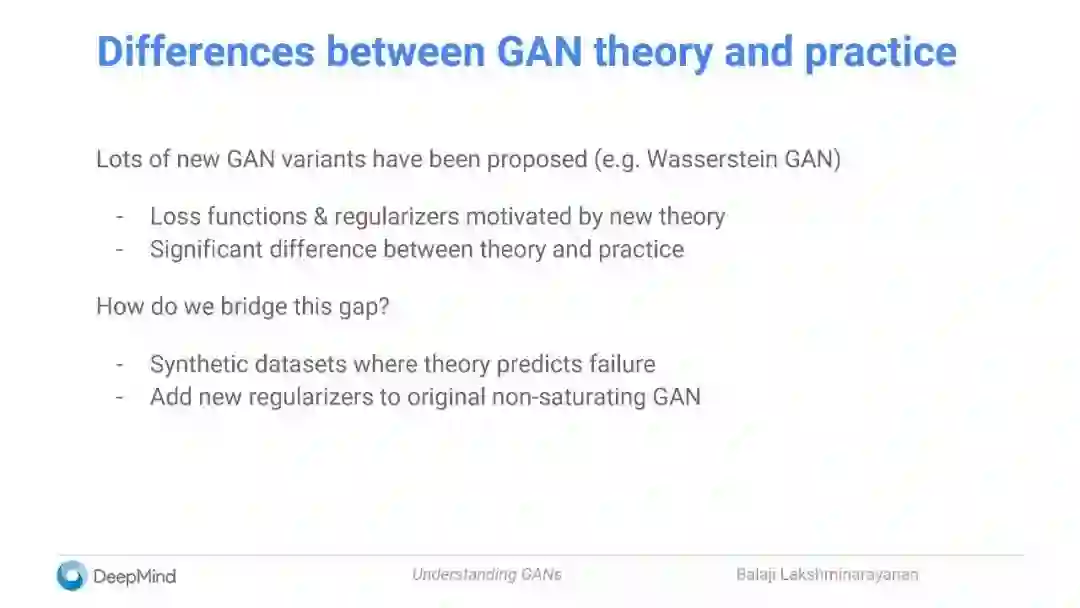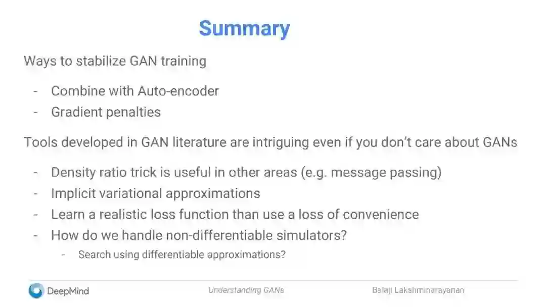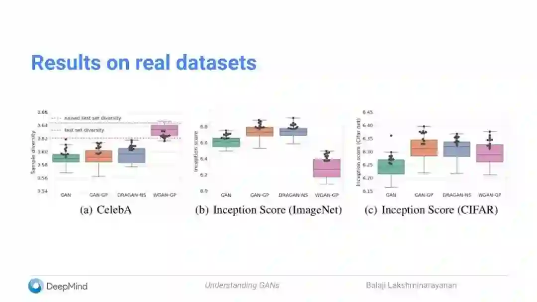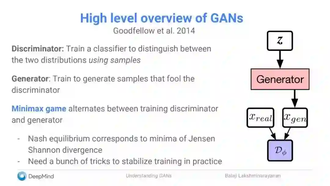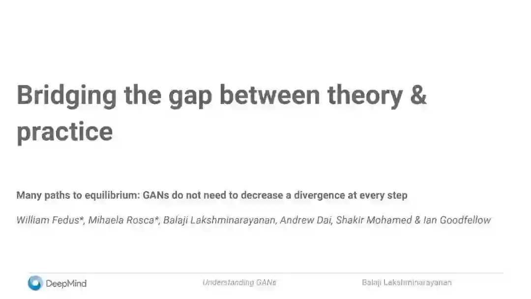 【新智元导读】本文是DeepMind高级研究科学家Balaji Lakshminarayanan在SF AI Meetup上演讲的slides,总结了他以及 Ian Goodfellow,Shakir Mohamed, Mihaela Rosca等人最新的GAN工作。