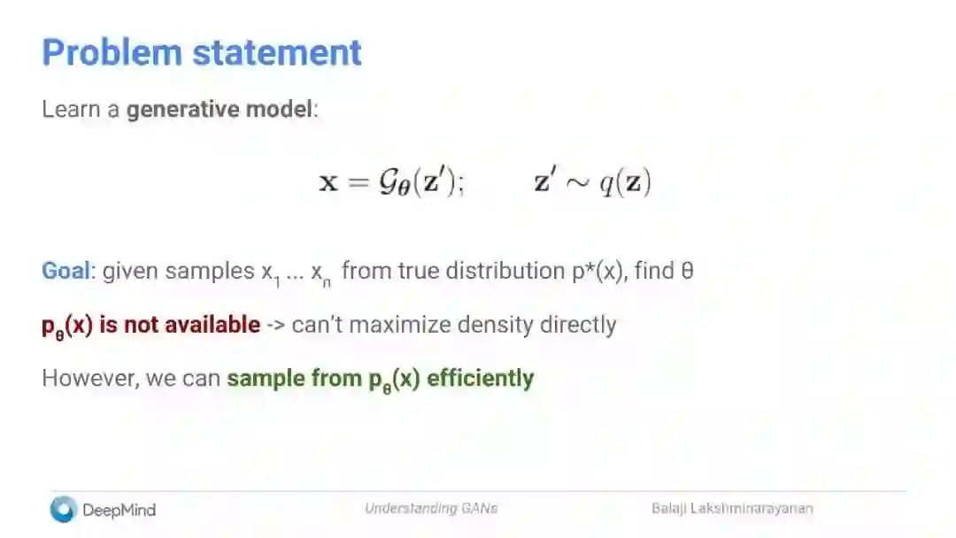 PPT下载:http://www.gatsby.ucl.ac.uk/~balaji/Understanding-GANs.pdf
