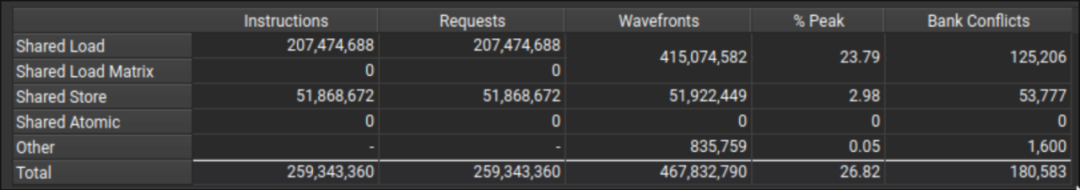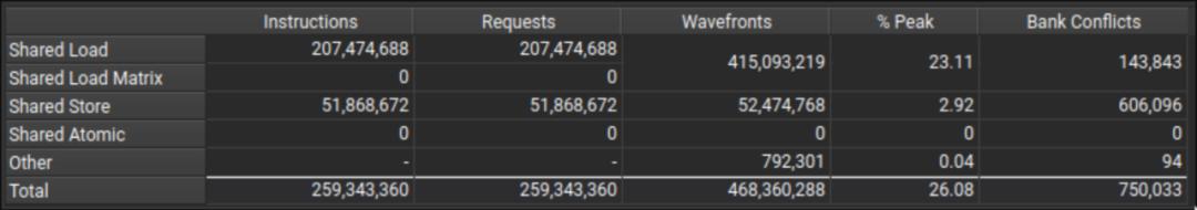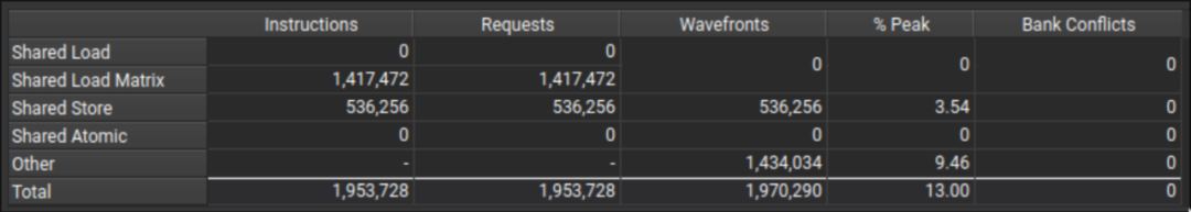 这里我们跑一个 profile 发现,确实是没有 bank conflict 的,挺好。代码在这: