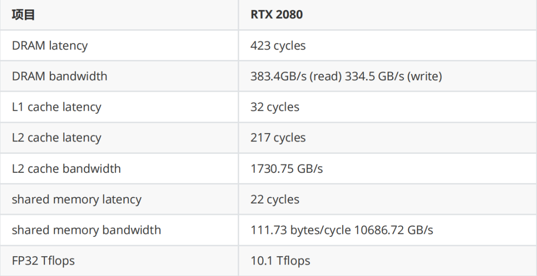 为 64,带入 RTX 2080 的数据,可以得到 10.1 Tflops / 16 = 631.25 GB/s。即内存访问带宽达到 631.25 GB/s 就能避免内存访问瓶颈了。同样,我们取 L2 命中率为 20%(还是比较好达到的),加权内存访问带宽为: