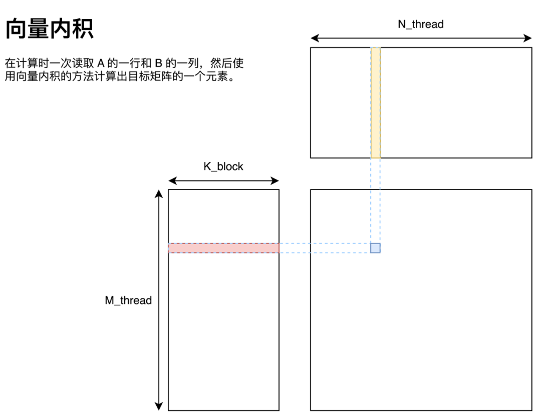 向量内积的实现方法如图所示,即将 A 矩阵拆分为多个