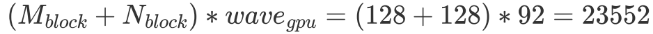 代表一个 wave 同时运行的 Block 数量,假设一个 wave 刚好能计算 C 矩阵的整数行,那么我们不难发现对于一个 wave 而言,它需要从 Global Memory 中读取
