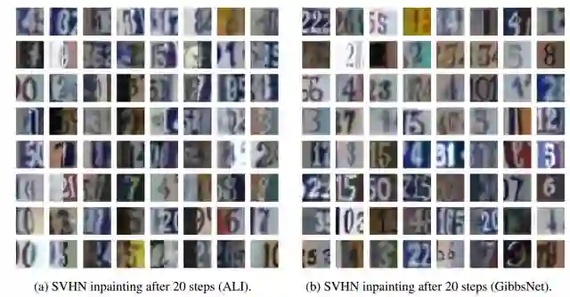 图 5:SVHN 的图像修复结果,其中右半边是给定的图像,左半边是修复的结果。
