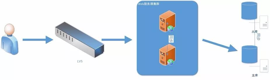 前端的三款产品都是分别使用 LVS 负载到后端的两台 Web 服务器中(如下图),这次用户反馈基本在 Web 和 APP 端,所以重点观察这四台服务器。