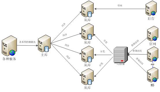 平台最大的压力来自于数据库,需要将现在的一主一从,改为一主四从。官网/APP/小网页产生的大量查询,由虚 IP 分发到三台从库,后台管理查询走另外的一个从库。