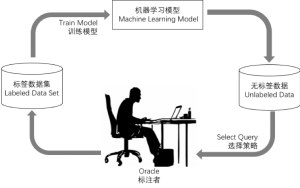 在循环查询阶段,按照某种查询策略从无标签数据集中选择样本数据进行标注,并将已标注的数据加入到标注数据集中,重新训练机器学习的模型,直到达到训练停止的标准才停止循环。