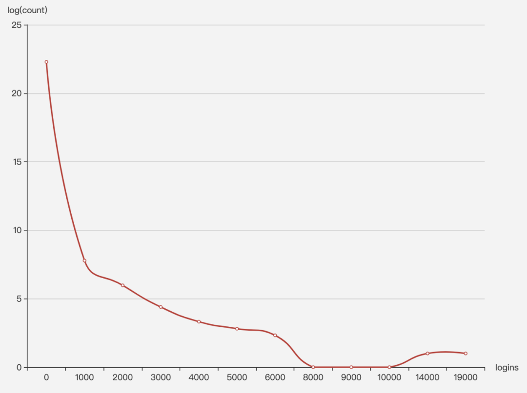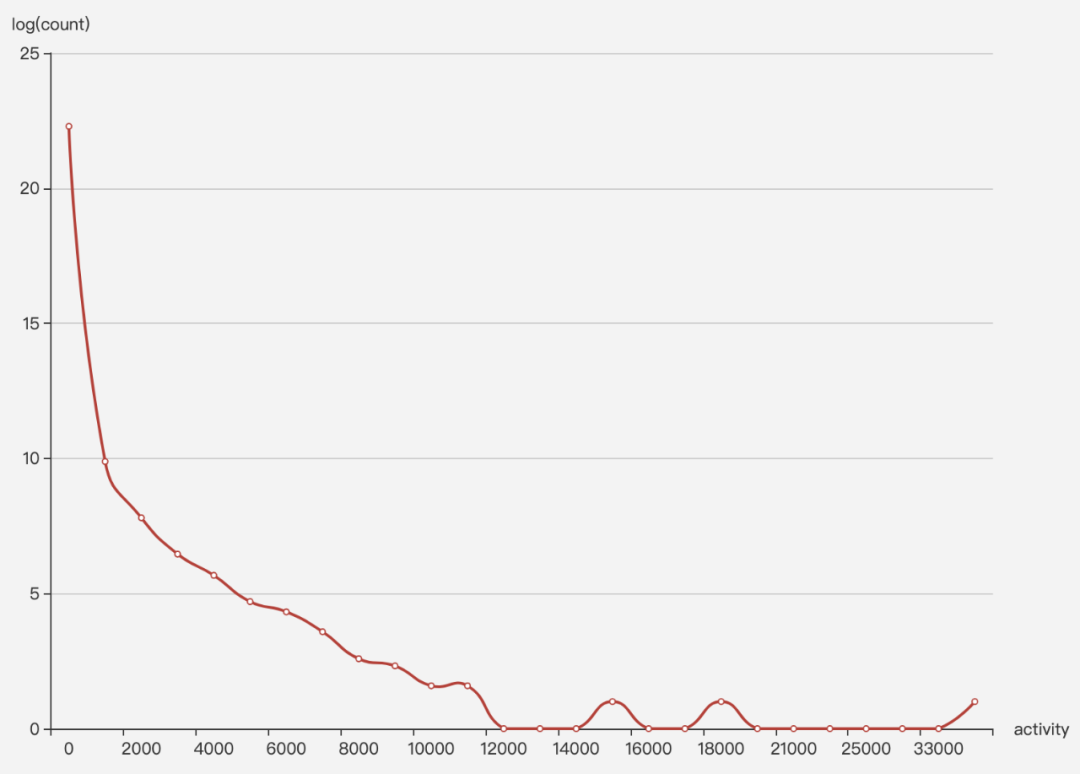 对于这 512 万个项目的活跃开发者人数分布,如下图: