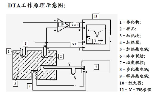 原理:在程序控温条件下,测量试样与参比基准物质之间的温度差与环境温度的函数关系。