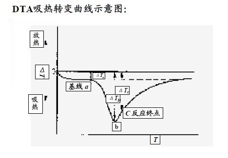 DTA曲线:以温度为横坐标、试样和参比物的温差ΔT为纵坐标,以不同的吸热和放热峰显示样品受热时的不同热转变状态