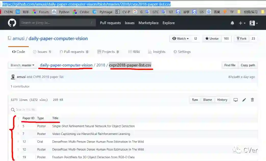 Amusi 已经将 CVPR 2018 所有论文清单上传到 daily-paper-computer-vision 上,大家直接点击文末的 “阅读全文”,即可访问 daily-paper-computer-vision,下载 cvpr2018-paper-list.csv。