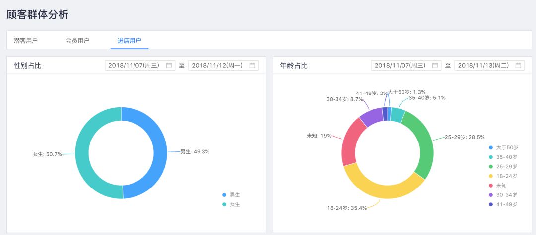 下图为门店进店客流的人群画像,展示了门店每天进店客流的性别和年龄的分布,商家会基于进店的人群画像数据与当前品牌的目标人群进行对比,并基于实际进店客流的分布调整门店陈列商品的品类结构以及不同类型商品的占比。