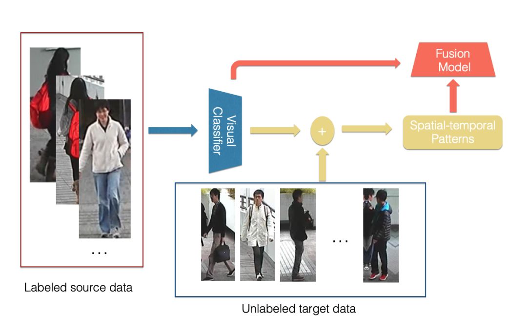 混合模型首先基于原始的视觉特征的分类器来计算各个摄像头以及不同时间间隔之间转移的概率分布,再使用时空信息与原始分类器结合得到最终的结果。