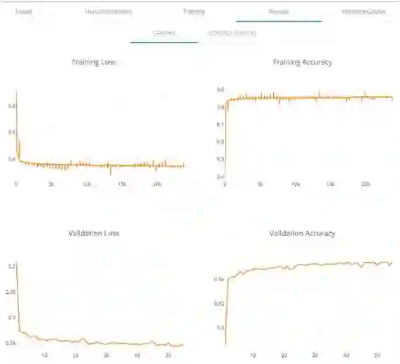 一旦完成了训练,你可以在结果选项卡中查看结果。我们在成本为每小时 0.90 美元的 K80 GPU 上,在几小时内获得了 85% 以上的精确度。