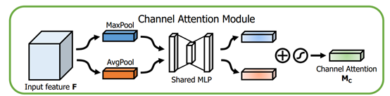 这个部分大体上和SENet的注意力模块相同,主要的区别是CBAM在S步采取了全局平均池化以及全局最大池化,两种不同的池化意味着提取的高层次特征更加丰富。接着在E步同样通过两个全连接层和相应的激活函数建模通道之间的相关性,合并两个输出得到各个特征通道的权重。最后,得到特征通道的权重之后,通过乘法逐通道加权到原来的特征上,完成在通道维度上的原始特征重标定。