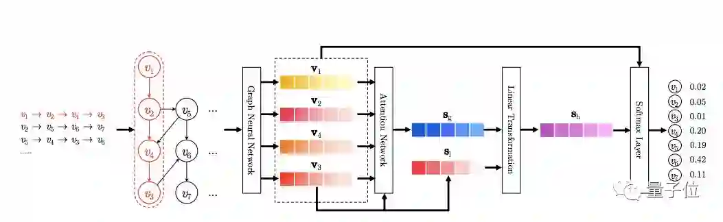 相较于之前通过循环神经网络(RNN)来对会话进行序列化建模导致的不能够得到用户的精确表征以及忽略了items中复杂的转换特性,SR-GNN通过将序列化的问题转换为图的问题,对所有的会话序列通过有向图进行建模,然后通过图神经网络(GNN)来学习每个item的隐向量表示,进而通过一个注意力网络(Attention Network)架构模型来捕捉用户的短期兴趣,以达到捕获长期与短期兴趣共存的向量表示。