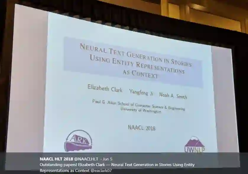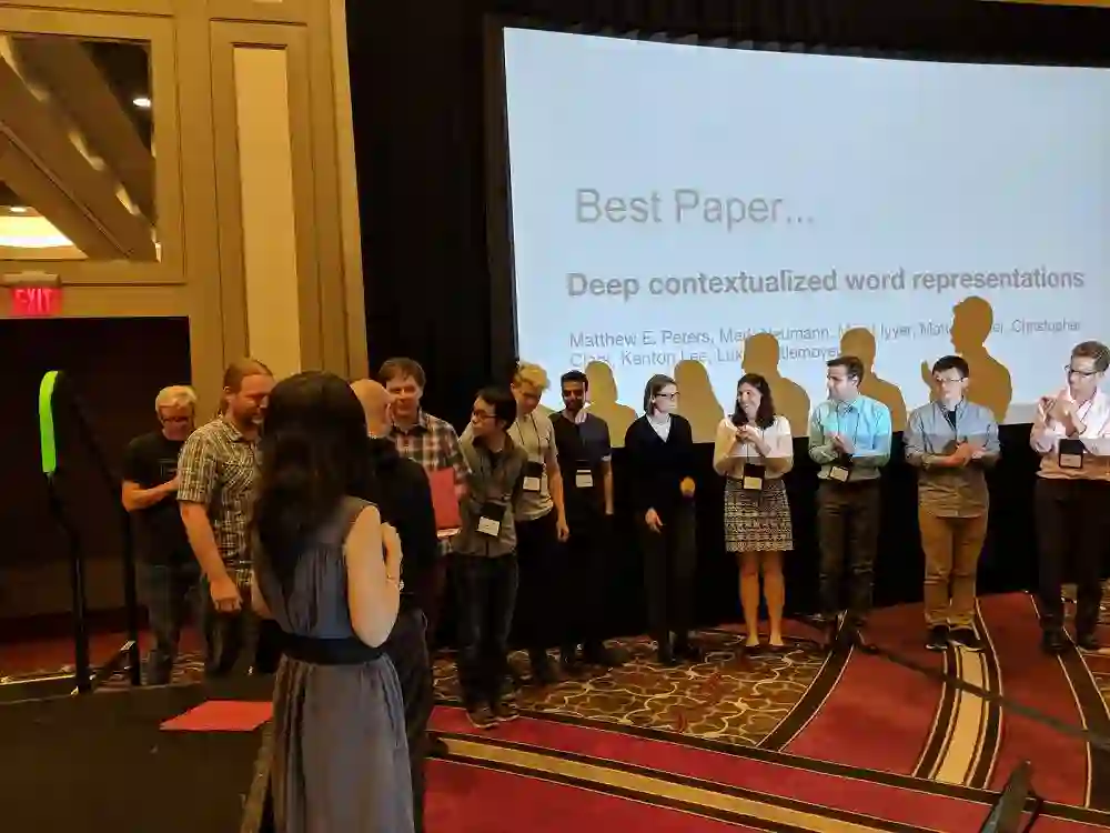 【导读】当地时间6月1日到6月6日,第十六届自然语言处理顶级会议NAACL - HLT(Annual Conference of the North American Chapter of the Association for Computational Linguistics: Human Language Technologies,简称 NAACL)在新奥尔良市举行,来自世界各地的NLP专家聚集在一起介绍NLP和相关领域的最新进展。大会公布了各奖项包括最佳论文奖、4 篇杰出论文(Outstanding Papers)和 3 篇时间检验奖获奖论文(Test-of-Time Award Papers),其中艾伦人工智能研究院Matthew E. Peters获得最佳论文奖。