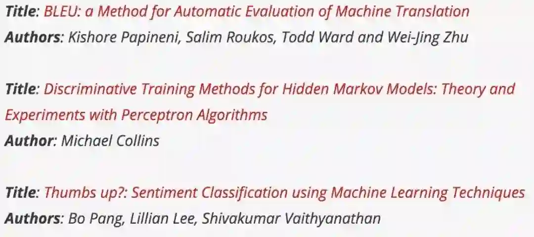 今年NAACL 会议首次设立时间检验奖,选择范围为 2002-2012 年 ACL 的各个会议(包括 ACL, NAACL, EACL, EMNLP 和 CONLL)、workshop 以及期刊(TACL 和 CL journal)中的关于计算语言学(Computational Linguistics)的论文,意在表彰直到今天都对计算语言学领域有显著、长期影响的论文。在 NAACL 2018 区域主席提名的 19 篇无利益冲突的论文中,最终选出了如下三篇论文,这些经典值得大家仔细研读。