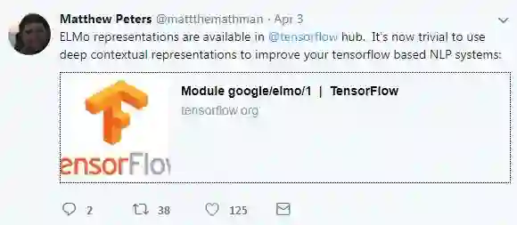 值得一提的是,ELMo已经加入到TensorFlow Hub中,方便大家调用。