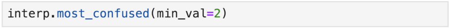 most_confused只突出显示预测分类和实际类别中最混乱的组合,换句话说,就是分类最常出错的那些组合。从图中可以看到,模型经常将斯塔福郡斗牛犬错误分类为美国斗牛犬,它们实际上看起来非常像。