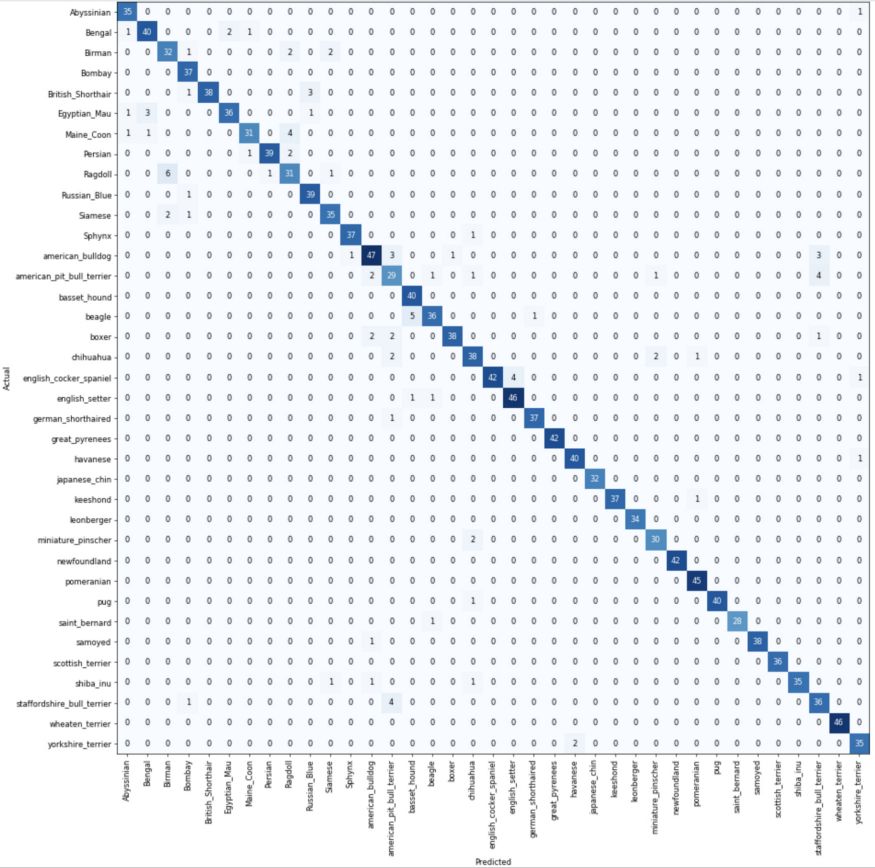 ['Abyssinian', 'Bengal', 'Birman', 'Bombay', 'British_Shorthair', 'Egyptian_Mau', 'Maine_Coon', 'Persian', 'Ragdoll', 'Russian_Blue', 'Siamese', 'Sphynx', 'american_bulldog', 'american_pit_bull_terrier', 'basset_hound', 'beagle','boxer', 'chihuahua', 'english_cocker_spaniel', 'english_setter', 'german_shorthaired', 'great_pyrenees', 'havanese', 'japanese_chin', 'keeshond', 'leonberger', 'miniature_pinscher', 'newfoundland', 'pomeranian', 'pug', 'saint_bernard', 'samoyed', 'scottish_terrier', 'shiba_inu', 'staffordshire_bull_terrier', 'wheaten_terrier', 'yorkshire_terrier']