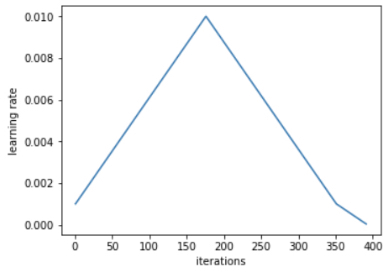 从得到的图中,我们一致认为适当的学习率约为1e-4或更小,超过这个范围,损失就开始增大并失去控制。我们将最后一层的学习速率设为1e-4,更早期的层设为1e-6。同样,这是因为早期的层已经训练得很好了,用来捕获通用特征,不需要那么频繁的更新。