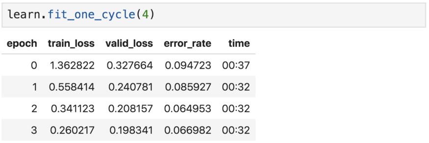 fit_one_cycle会按预设epoch数训练模型,比如4个epoch。