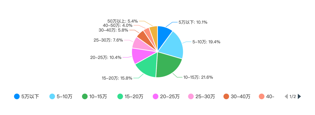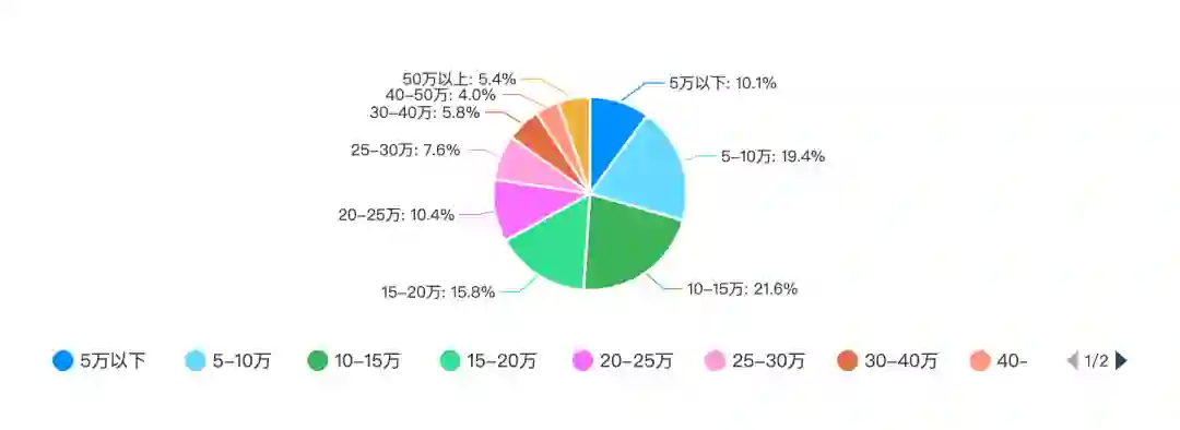 从调查结果我们可以看出,程序员的年薪呈正态分布,主要集中在 5-25 万之间,占比高达 67.2%。年薪在 5-10 万的程序员占比为 19.4%,年薪在 10-15 万的程序员占比为 21.6%,年薪在 15-20 万的程序员占比为 15.8%,年薪在 20-25 万的程序员占比为 10.4%,年薪在 25-30 万的程序员占比为 7.6%。此外,年薪在 30 万及以上的程序员占比为 15.2%,年薪在 5 万以下的占比仅为 10.1%。