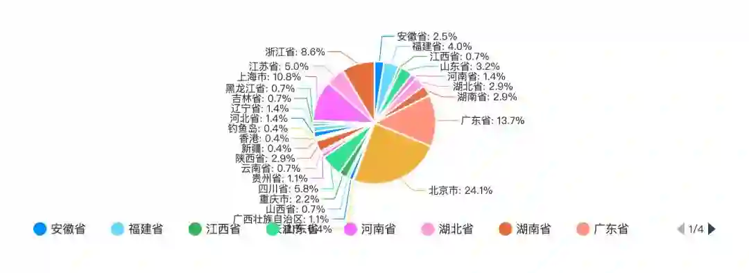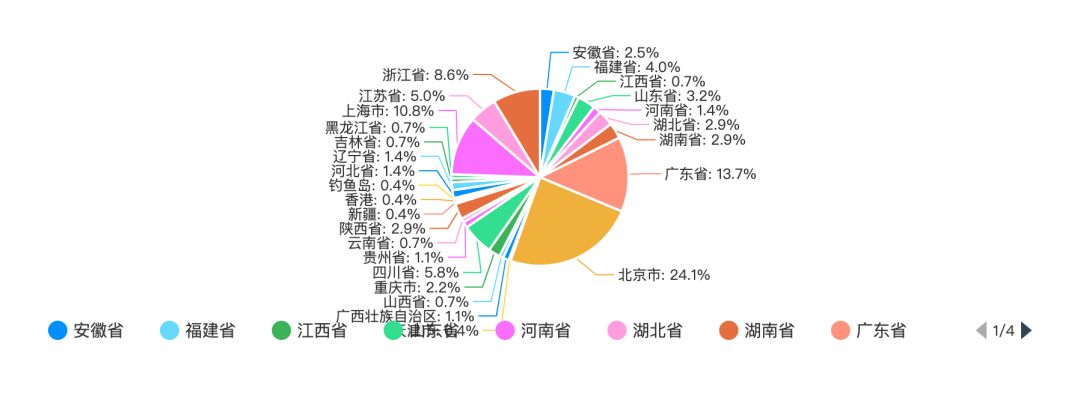 根据统计来看,北京拥有着中国最多的程序员,占比为 24.1%。其次广东占 13.7%,上海占 10.8%,浙江占 8.6%,四川占 5.8%,江苏占 5.0%,福建占 4.0%。广东的程序员主要集中在广州和深圳。浙江的程序员主要集中在杭州。四川的程序员主要集中在 成都。江苏的程序员主要集中在南京,苏州。福建的程序员主要集中在厦门。此外,陕西拥有 2.9% 的程序员,主要集中在西安。