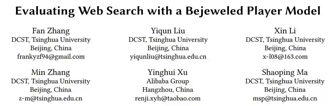 论文标题:Evaluating Web Search with a Bejeweled Player Model
