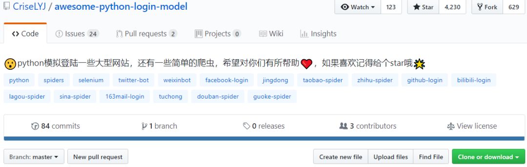 目前该项目已经获得 6732 个Star,1127 个Fork(GitHub地址:https://github.com/CriseLYJ/awesome-python-login-model)