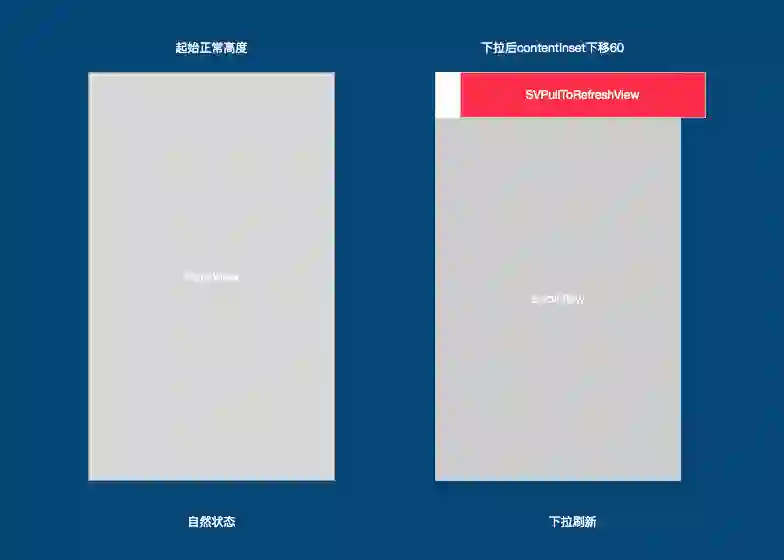 下拉刷新后, scrollView的内容高度下移60; 当然只是内容高度, 整个scrollView还是全屏的, 对比css中padding理解一下;注:SVPullToRefreshView向右移动一点儿距离, 方便看视图层级;layoutSubviews方法: