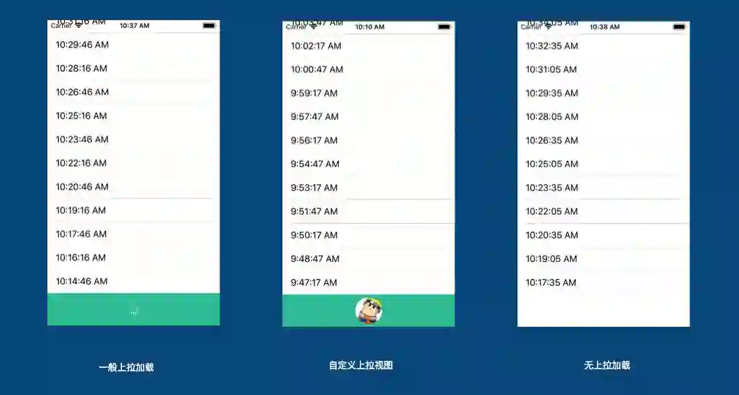 上拉刷新相对于下拉, 少了很多东西, 也就简单了一些, 重复性的就不多说了.值得注意的是, 对比下拉, 上拉把layoutSubviews里面东西放到setState:里面. 也是, 毕竟没多少东西, 对比着下拉刷新来看;