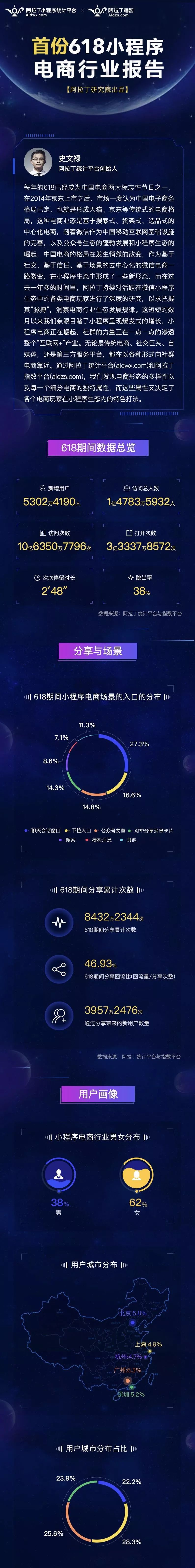 根据阿拉丁小程序数据平台统计,618期间,通过聊天会话窗口进入小程序的流量,占比27.3%,微信平台用户分享小程序共计超过8432万次,通过分享带来的新用户数量超过3957万位。