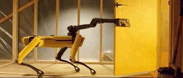 Spot机器狗的速度约为每小时3英里,与人类行走的速度相当。它的前面、后面和侧面都有摄像头,可帮助它导航、自主行动和全方位移动。它有不同的步态(慢走,行走,跑步,甚至跳舞),可以原地转弯,并可以有“夹手”模式。最后一个意味着它可以将手的运动与身体的运动分离开来,就像许多动物在身体的其他部位运动时可以使某个身体部位保持稳定一样。