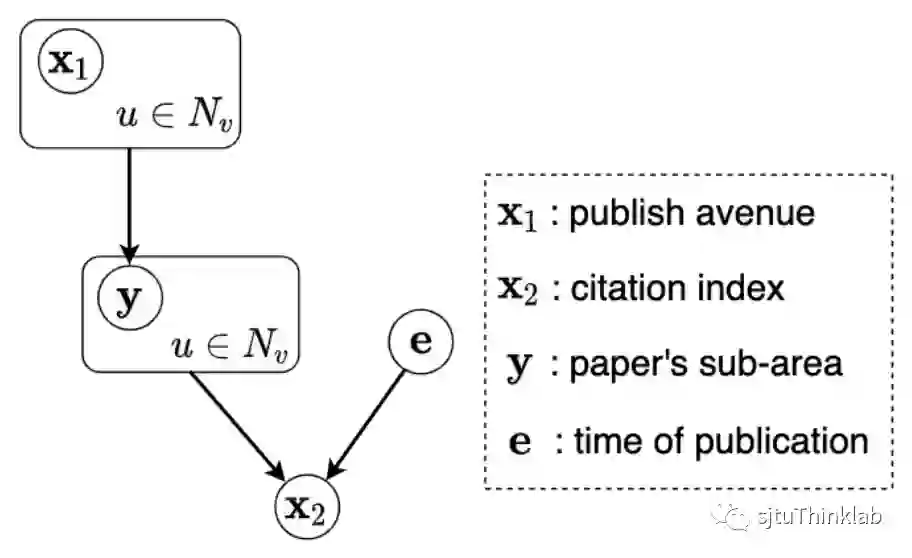 是论文发表的时间。我们可以将上述变量的因果关系表示为下图:具体的,对图中的三个因果依赖关系可以作如下理解。1)