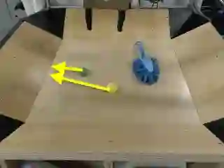 新任务的创建需要用户给定关键点的移动。比如下图中,我们希望机器人把地上的垃圾扫到簸箕中,就在图中选中垃圾的中心点,然后画出希望的最终位置。用这种方式指定任务并不会告诉机器人如何使用工具,在有多种工具可以选的环境下甚至都没有指明要用哪一种工具,机器人需要自己思考并规划。