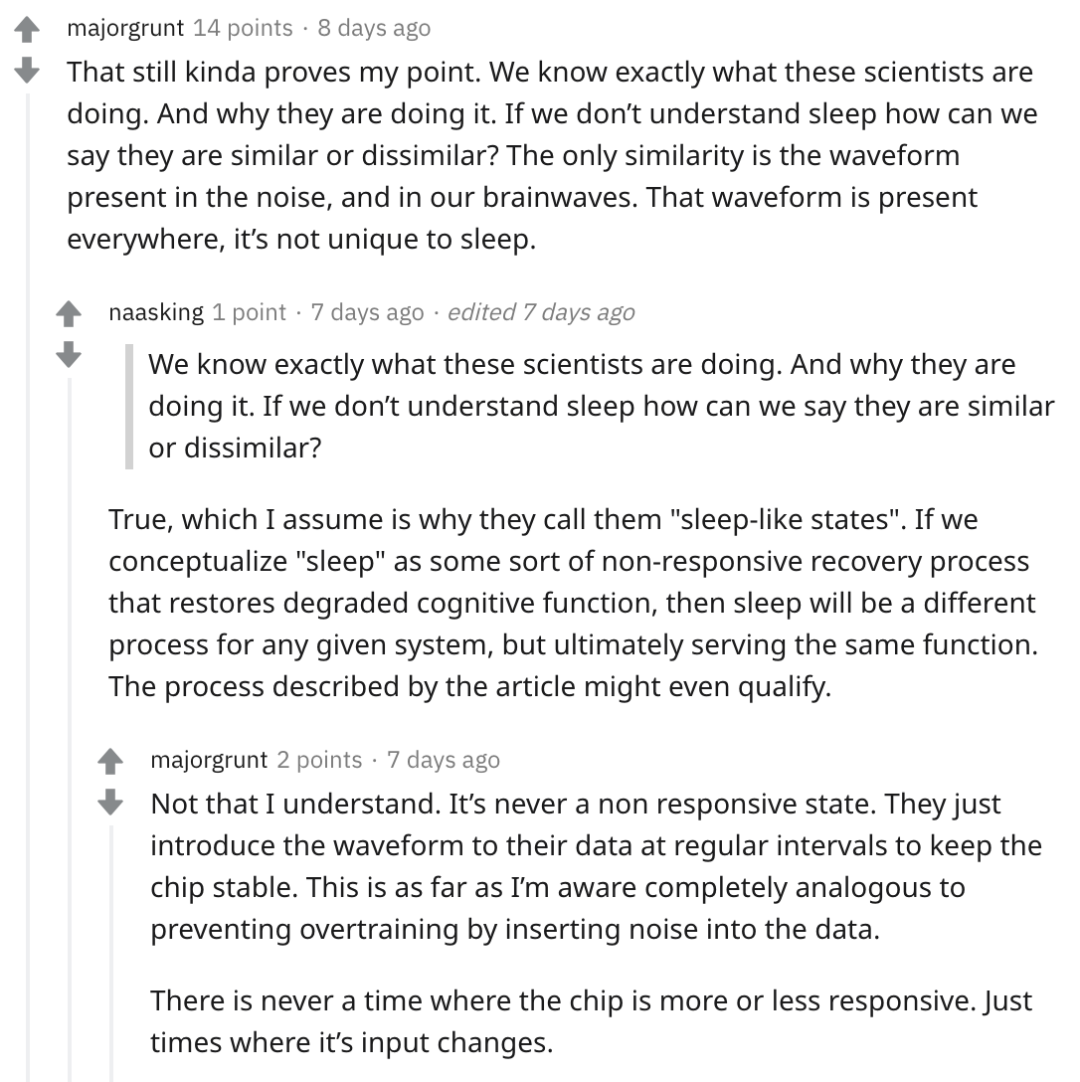 [3]https://www.reddit.com/r/science/comments/gzxi3w/artificial_brains_may_need_sleep_too_neural/ftk3h1p/