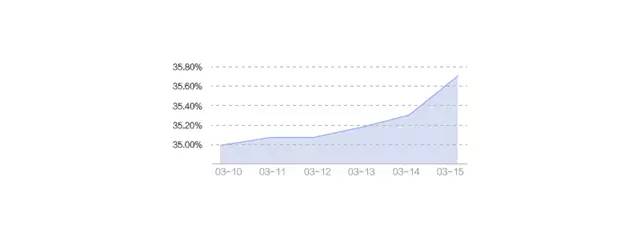 这种在Y轴上诱导的方式很常见,经常【某额宝】上展示近几日收益的时候,通过图表好像3月15号的时候收益非常高,但是仔细去看Y轴上的数值,会发现其实3月15号比3月10号的收益增长只有0.6%的,但是感观上给观察者非常夸张的展示。