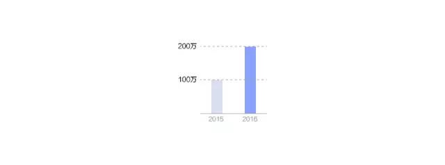 我们来看一个例子,上图是一个销售财年的报表,2015年销售额100万,2016年到达200万,从上图图表展示出来给观察者的信息就是,2016年比2015年销售额增长了1倍的样子。