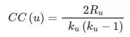 其中,u 代表我们需要计算聚类系数的节点,R(u) 代表经过节点 u 和它的邻居的三角形个数,k(u) 代表节点 u的度。下图是三三角计数聚类系数计算示意图: